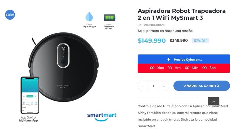 - Aspiradora Robot: Este elemento bastante útil y solicitado en variados hogares, tiene casi un 50% de descuento.