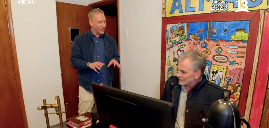 A diferencia de otros rostros de la televisión que formaron parte del programa de Canal 13, el actor optó por no mostrar su hogar y realizar el encuentro en su lugar de trabajo, un espacio personal que mantiene con particulares colecciones.