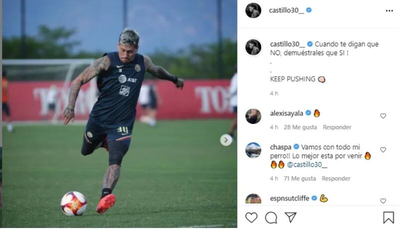 En es este contexto, y en medio de muchas especulaciones con respecto a su futuro, fue el mismo Castillo quien a través de su cuenta de Instagram, envió un directo mensaje supuestamente a sus críticos, en el que aparece en los entrenamientos del cuadro de las "Águilas".
