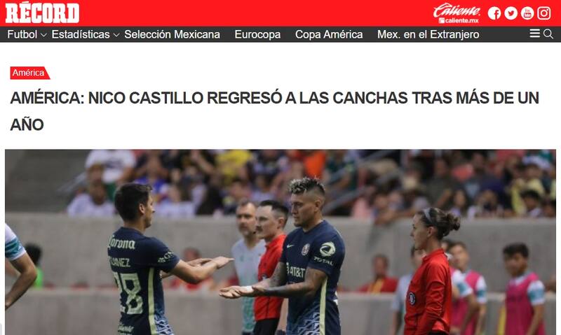 El periódico deportivo Récord tituló: "Nico Castillo regresó a las canchas tras más de un año". El Universal replicó la idea, destacando el tiempo que estuvo lesionado: "Nicolás Castillo vuelve a jugar con el América tras año y medio".