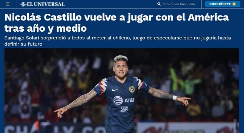 En tanto el sitio web Mediotiempo resaltó las reacciones que hubo en el camarín del América ante el regreso de Castillo: "En América celebran regreso de Nico Castillo: 'Es una motivación'".