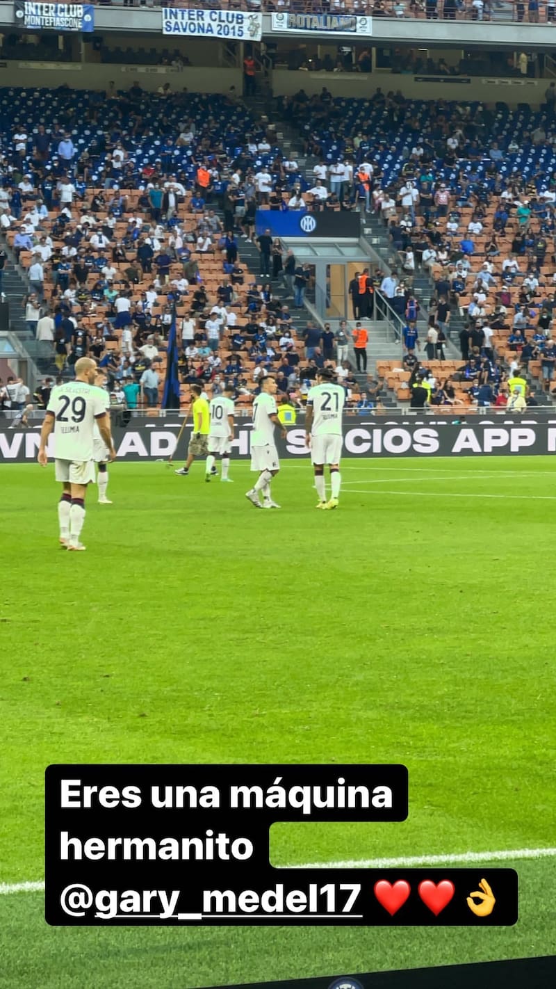 En duelo válido por la jornada 4 de la Serie A de Italia, el cuadro de los chilenos Alexis Sánchez y Arturo Vidal, Inter de Milán, venció por 6-1 al Bologna del volante nacional Gary Medel. Pese a la rivalidad en la cancha, el "King", que quedó fuera del encuentro por molestias físicas, alabó la labor del "Pitbull" en el encuentro disputado en el Estadio Giuseppe Meazza.