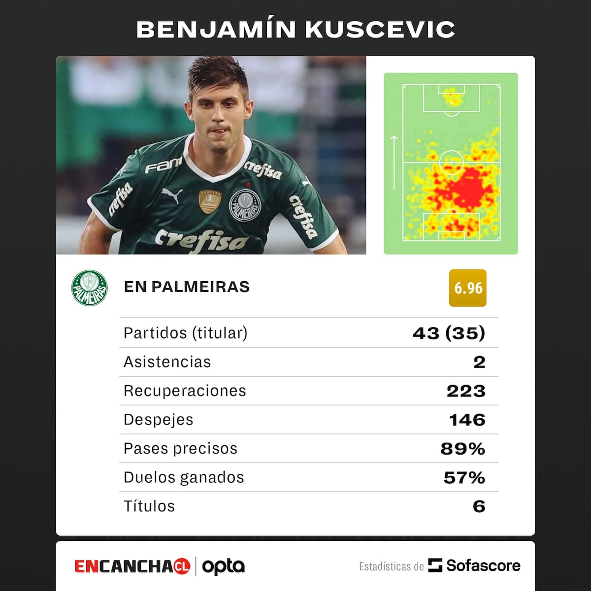 Benjamín Kuscevic llegó a Palmeiras en noviembre de 2020 tras buenas campañas en la Universidad Católica. Sin embargo, el zaguero de 26 años no pudo consolidarse en el "Verdao" dirigido por el entrenador portugués Abel Ferreira. El defensor fue un habitual suplente en el campeón del Brasileirao que quedó en el camino en semifinales de la Copa Libertadores ante el Athletico Paranaense.