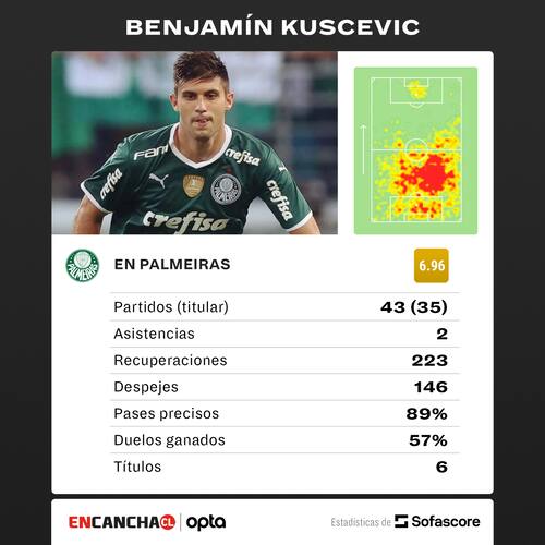 Los números de Benjamín Kuscevic en el Palmeiras