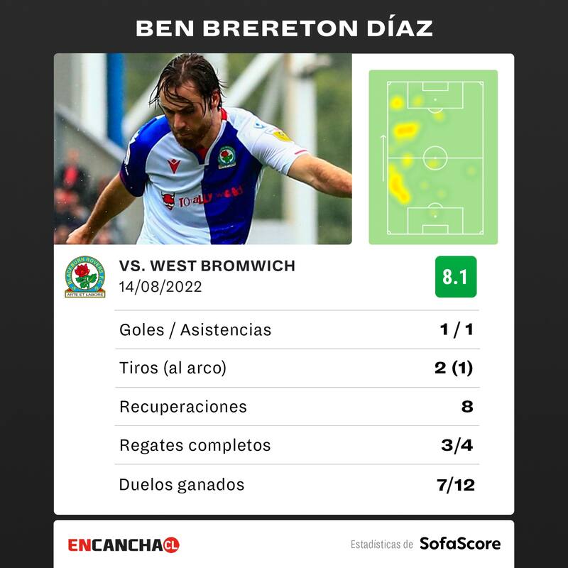 Ben Brereton participó en el triunfo de su equipo, el Blackburns Rovers, sobre el West Bromwich Albion por 2-1, en lo que fue un duelo válido por la cuarta fecha de la Championship. Con esto, el chileno tomó el liderato de la Segunda División del fútbol inglés.