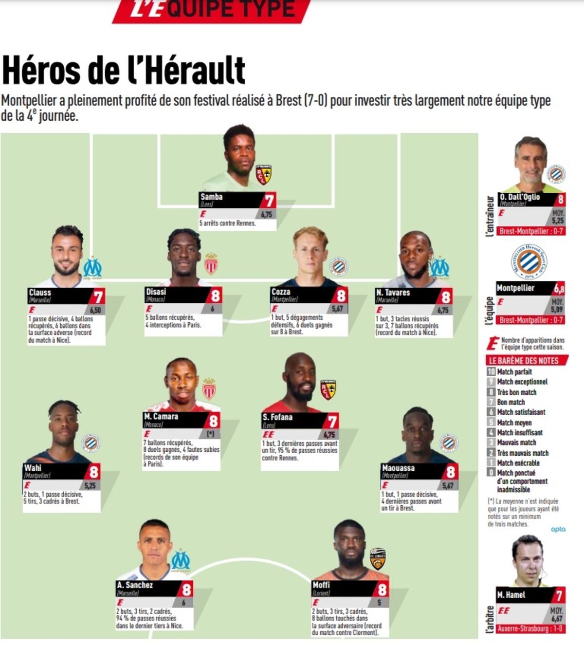 En el medio mencionado pusieron al bicampeón de América en el equipo ideal de la fecha 4 con una calificación de 8 sobre 10, integrando la delantera junto al delantero, Terem Moffi del Lorient.
