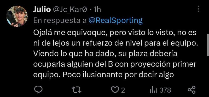 Sobre lo anterior, Ignacio Jeraldino comentó a los medios oficiales del club que “sé que la afición del Sporting espera más de mí en esta segunda etapa. Soy el primero que espera más, y con apoyo todo será más fácil y mejor para todos. Soy yo el que tengo que lograrlo. Trabajaré para convencer en El Molinón”.