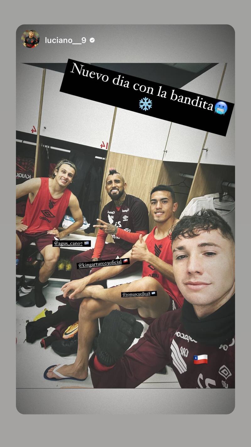 El joven delantero publicó en su Instagram -y compartido por Vidal- una fotografía en que aparece junto al bicampeón de América, el uruguayo Agustín Canobbio y el argentino Tomás Cuello, a quienes les da el nombre de “La Bandita”...