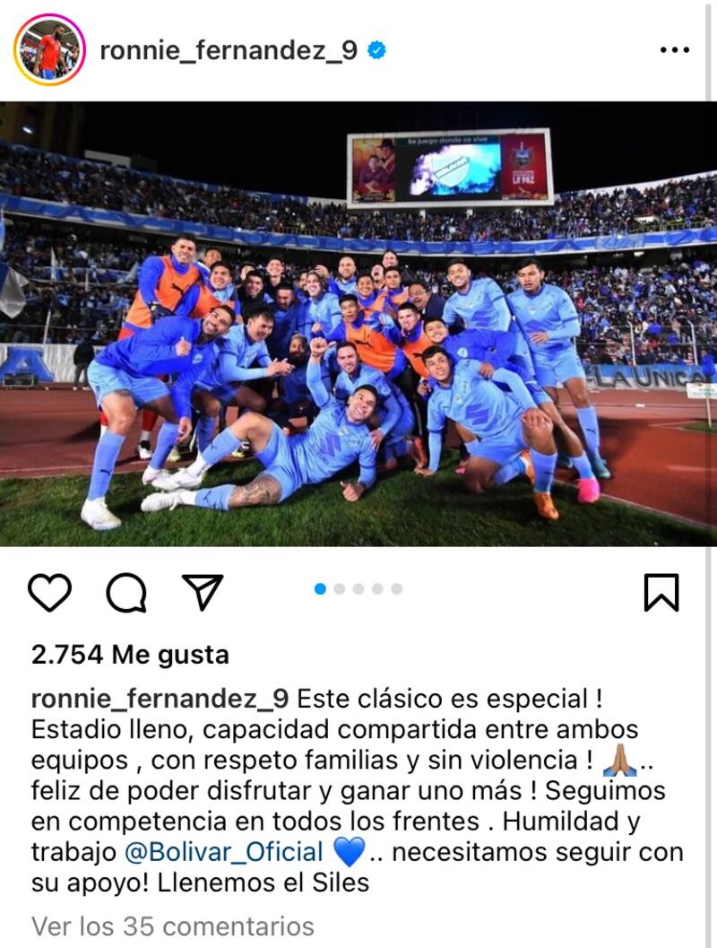 En su cuenta de Instagram, el delantero mostró su alegría. En una publicación consistente en varias fotografías con celebraciones tras la victoria, Fernández escribió: “Este clásico es especial. Estadio lleno, capacidad compartida entre ambos equipos, con respeto, familias y sin violencia. ¡Feliz de poder disfrutar y ganar uno más!”.