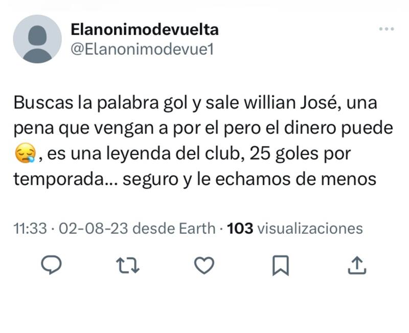 La partida de Willian José a México le significaría al Cruz Azul desembolsar alrededor de 7 millones de dólares. Una transacción que los hinchas béticos se han tomado con sarcasmo. En redes sociales, muchos replicaron el mensaje “Willian no se vende”, una súplica poco creíble si se consideran los números del jugador en la escuadra del Ingeniero.