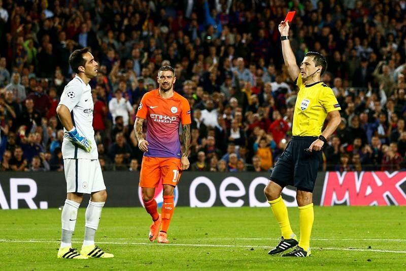 En su paso por el Manchester City, Bravo no tiene un buen recuerdo luego de ser expulsado por una mano fuera del área ante el Barcelona en el partido por el Grupo C de la Champions League 2016-2017, el cual terminó 4-0 a favor de los culés en el Camp Nou.