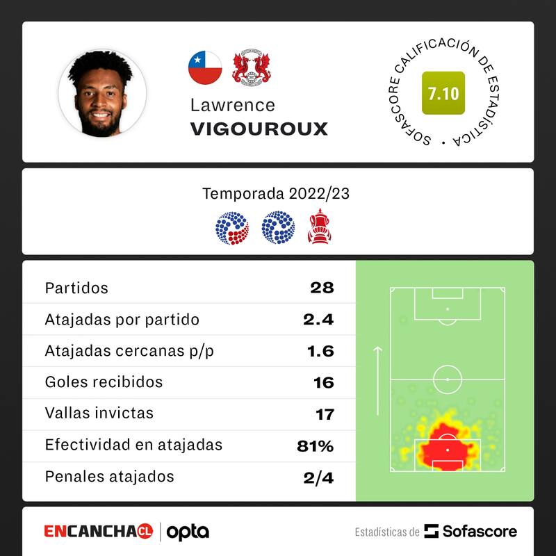 Según datos de Sofascore, Vigouroux en todas las competencias ha disputado 28 partidos con 16 goles recibidos y la suma impresionante de 17 vallas invictas. Además, sostiene una efectividad de atajadas del 81% y atajó dos de cuatro penales, que lo elevan como una de las grandes figuras de la categoría.