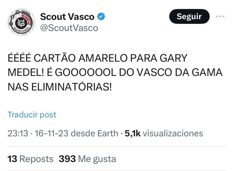 “Goooool de Vasco en las Eliminatorias” o “Cómo no amarlo, adora jugar por Vasco” fueron algunos de los comentarios de los internautas.