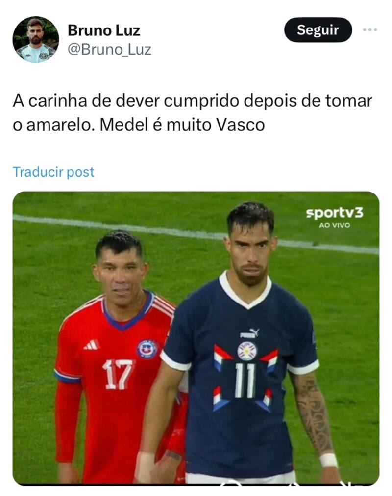 Pero no en todos lados la amarilla que el argentino Fernando Rapallini le mostró al Pitbull fue motivo de desazón. De hecho, en Río de Janeiro, la amonestación fue celebrada como un golazo... No por la Selección de Brasil, a la que poco le interesa lo que haga Chile en las Eliminatorias, sino a los fanáticos de Vasco da Gama, que gracias a esa amarilla, tendrán a su capitán de regreso en el equipo antes de lo previsto.