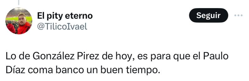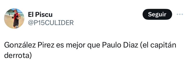 La mala noticia para Paulo Díaz llegaría una vez comenzado el encuentro: el argentino Leandro González Pirez -que lo reemplazó en el once titular de River Plate- abrochó un notable partido para el equipo de Marcelo Gallardo, siendo un punto alto junto a Germán Pezzella.