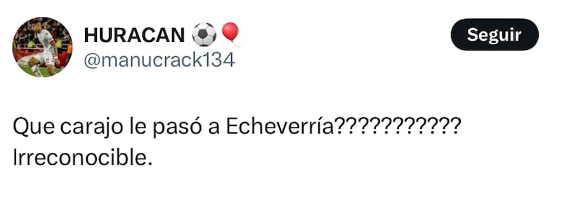 Junto a Walter Mazzantti y el entrenador Frank Darío Kudelka, quienes precisamente también tienen pasos por el fútbol chileno, fueron el blanco de las críticas en la eliminación del Globo en Copa Argentina. Ahora, Echeverría deberá enfocarse en el título de Primera División, donde Huracán marcha segundo a tan solo tres unidades de Vélez Sarsfield.
