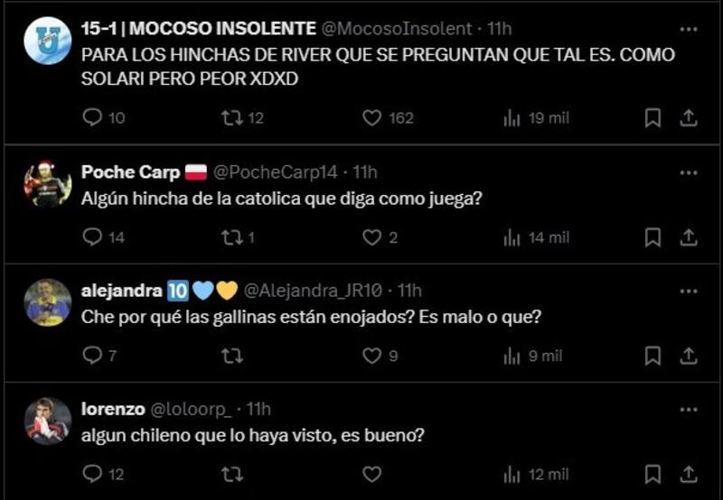 Pero si la noticia pilló de sorpresa en nuestro país, al otro lado de la cordillera fue un verdadero shock. Tapia, en buen castellano, no estaba en los planes de nadie y los hinchas Millonarios rápidamente se volcaron a las redes sociales a pedir referencias de él.