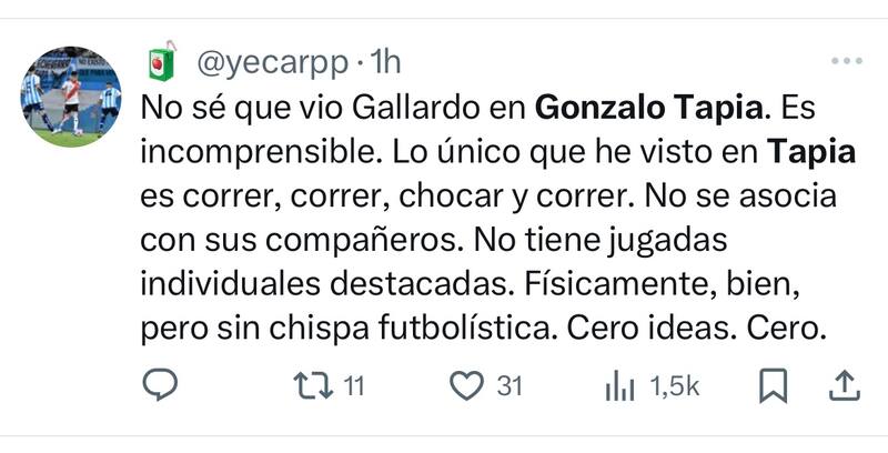 Los cibernautas fueron implacables. Tildaron al chileno de “amateur” incluso y algunos apuntaron a que era incomprensible que el club haya dejado partir a Pablo Solari para reemplazarlo por Tapia.
