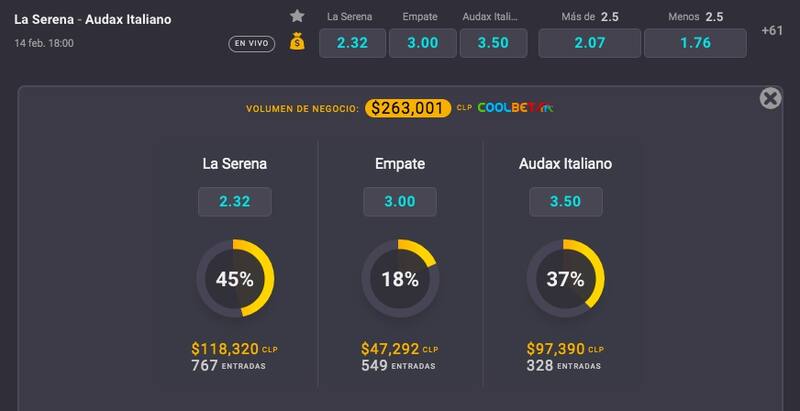 Coolbet ya tiene su pronóstico para este compromiso. Si es que gana Deportes La Serena entregará una cuota de 2.32 mientras que la victoria de Audax Italiano, pagará 3.50. Por su parte, una igualdad dará 3.00.
