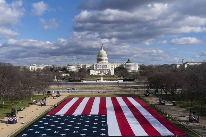 En el Nacional Mall de Washington D.C, se han instalado 200 mil banderas representado a todos los ciudadanos estadounidenses que no podrán asistir a la toma de protesta de Joe Biden como presidente este año por la pandemia y como medida para extremar la seguridad. Además, se ha iluminado la zona con 56 pilares, haciendo alusión a cada estado y territorio del país.