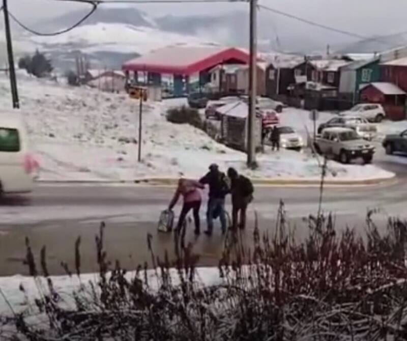 Precisamente esto último quedó registrado por la usuaria de TikTok @alexandramanzur, quien compartió un video que se transformó en viral donde se ven tres personas tomadas de la mano intentando cruzar la calle, pero sin poder avanzar debido a la superficie resbaladiza.