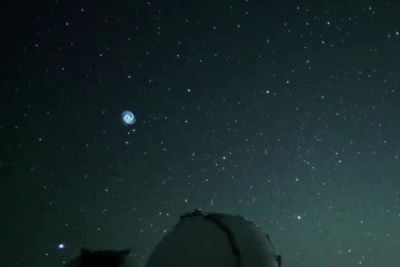 Un impresionante espiral fue visto en el Observatorio Nacional de Japón a través de una cámara que se encuentra ubicada fuera del telescopio Subaru en el Mauna Kea, uno de los volcanes de Hawaii.