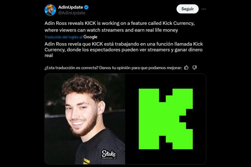 Recientemente, Adin Ross, uno de los más grandes streamers de Kick, confirmó que la plataforma verde busca implementar una nueva herramienta llamada “Kick Currency” (o Moneda Kick en español), a través de la cual los espectadores también podrán ganar dinero.