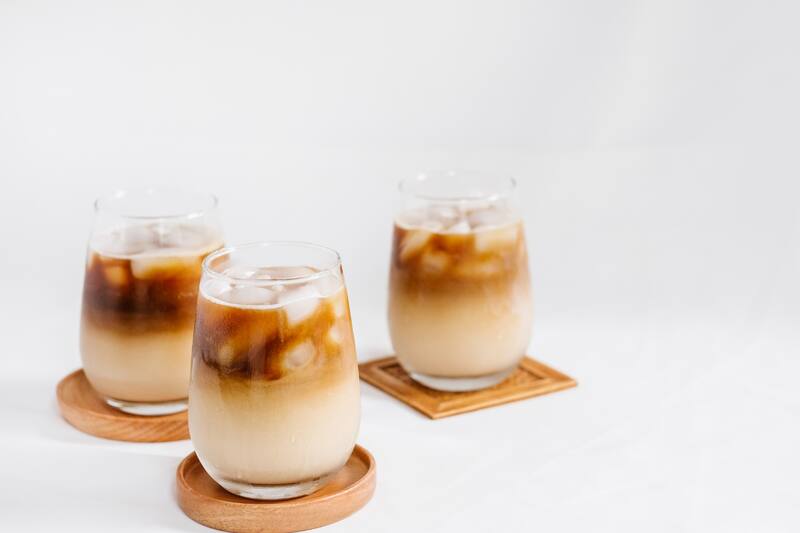 • 3.  En un vaso grande, dispón el hielo, el café preparado con anteriormente y la leche.