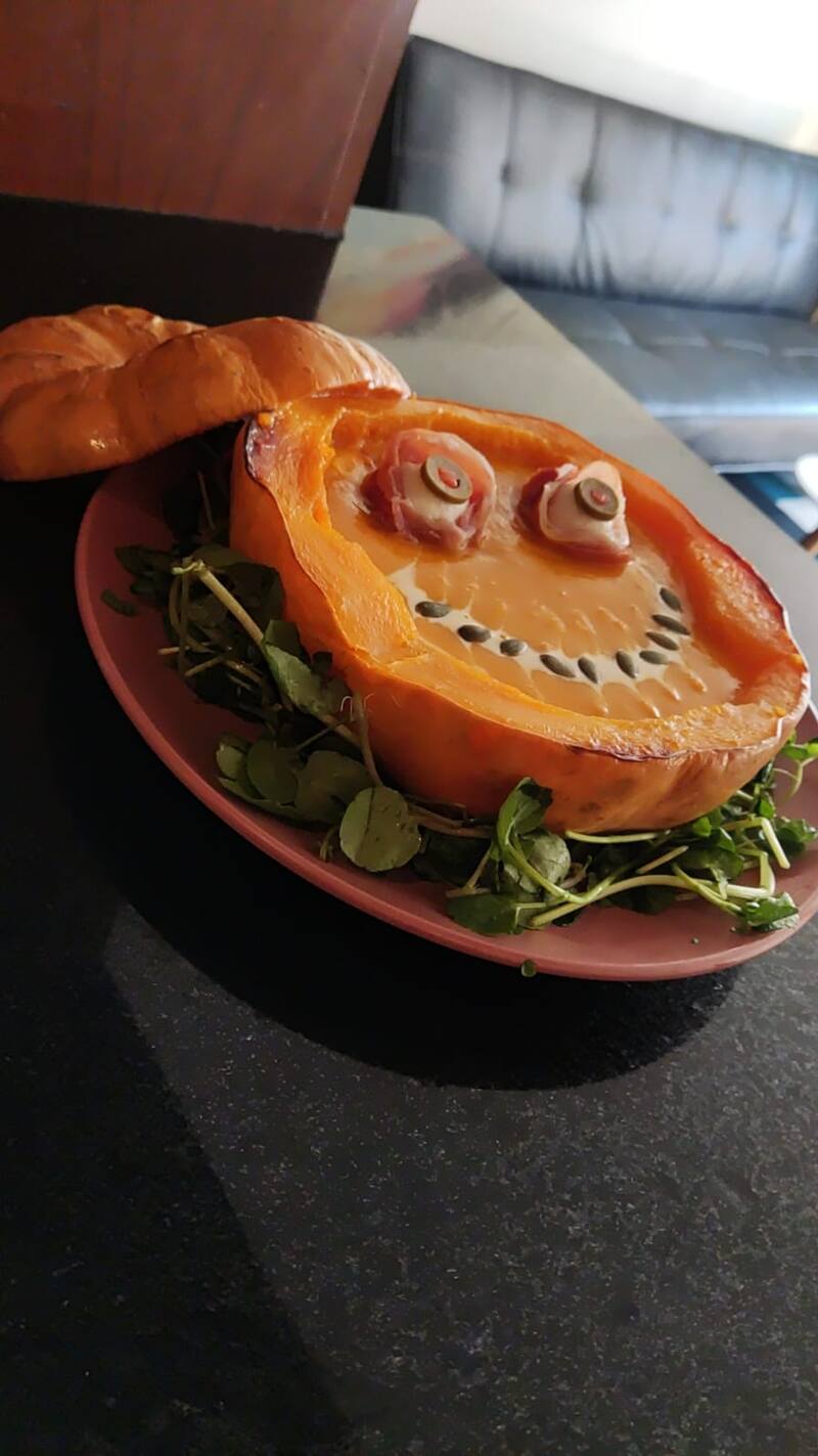 Esta receta, que puedes hacer con ingredientes que tienes en tu casa, consiste en una deliciosa sopa de zapallo que decorarás como la típica calabaza de Halloween que vemos en las películas de terror estadounidenses o incluso en algunas casas de tu barrio.