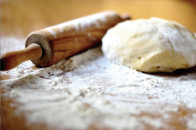 • En un bol grande, dispón la harina en forma de cerro y luego, haz un hueco en medio.