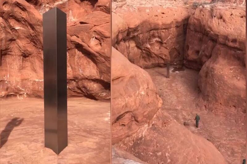 Un extraño monolito de metal fue descubierto en el desierto de Utah, en Estados Unidos, por un grupo de trabajadores de los servicios de protección de la vida silvestre que viajaban en un helicóptero.