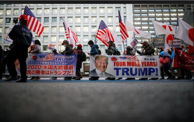Según información de Reuters, un pequeño grupo de fans japoneses de Donald Trump marcharon en las calles de Tokyo, con gritos de apoyo y admiración por el presidente saliente horas antes de que su sucesor, Joe Biden tome posesión.