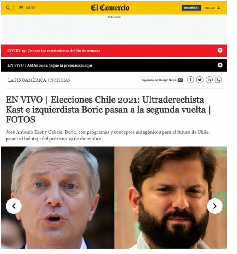 Tras confirmarse los triunfos de José Antonio Kast y Gabriel Boric en las Elecciones 2021, tanto el representante del Pacto Social Cristiano como el de Apruebo Dignidad se enfrentarán el próximo 19 de diciembre en la segunda vuelta presidencial.