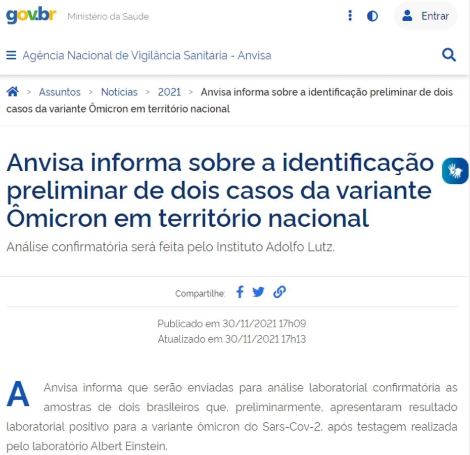 Según detalla el reporte publicado esta jornada, se trata de una pareja de dos brasileños quienes llegaron al país en un viaje proveniente de Sudáfrica. Ambos fueron testeados en el aeropuerto internacional de Guarulhos, São Paulo. Según indica el documento, el 23 de noviembre ambos presentaron negativos los exámenes de PCR.