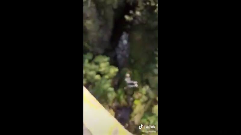 La caída, de unos 20 metros, fue registrada por uno de los dos individuos que captó el rostro tanto del agresor como de la víctima. Casi al final del video, uno de los hombre exclama que borren el registro porque el peruano "ya se murió". Justo después arrojaron las pertenencias del hombre también al fondo del río.