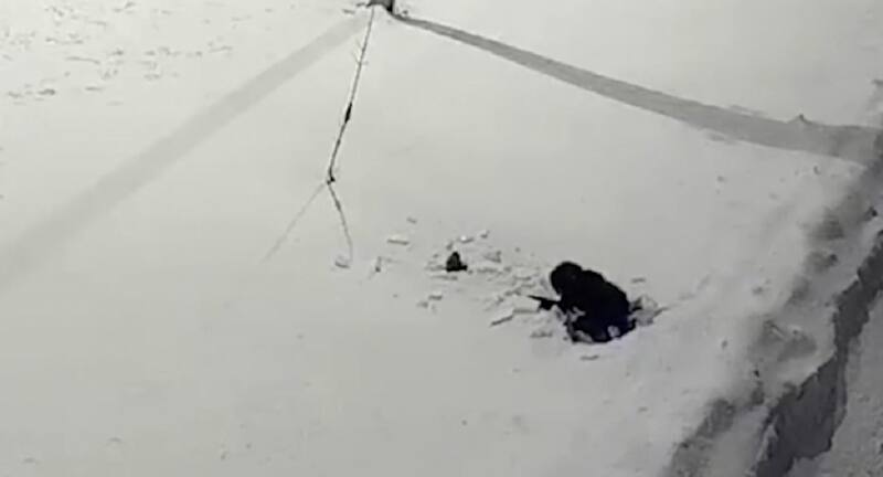 La nieve, que hace semanas cae en la zona, creó un colchón que amortiguó la muerte segura del niño, el que luego de impactar en el suelo, intentó pararse sin lograrlo. Hecho que quedó registrado por las cámaras de seguridad del lugar.