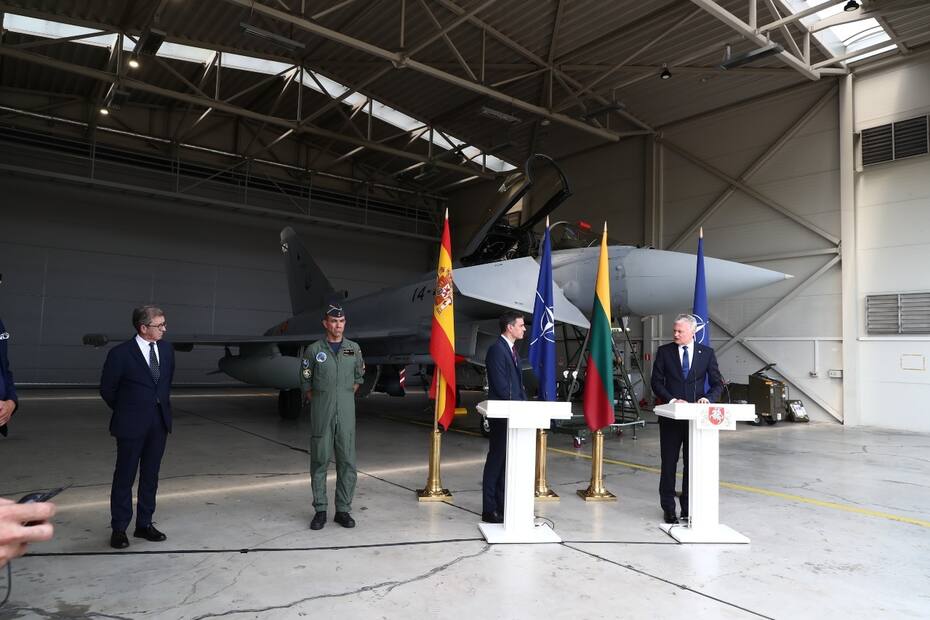 Pedro Sánchez estaba junto al mandamás de Lituania, Gitanas Nauseda, momento en que este estaba hablando, cuando comenzó a sonar la alarma. El grito Alfa y no Tango, da el aviso de que es una amenaza real y no un simulacro, por lo cual dos cazas Eurofighter fueron los encargados de salir a identificarlos.