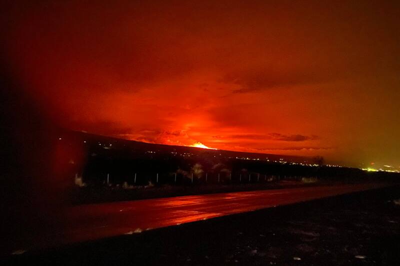El Mauna Loa no entraba en erupción desde el 13 de marzo del 1984 y este domingo volvió a hacerlo, creando un curioso efecto lumínico que dejó el cielo absolutamente rojo, como efecto del calor del magma contra las nubes.