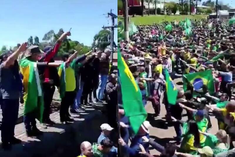 Pero la situación no quedó ahí, ya que durante el miércoles 2 de noviembre, en una de las protestas que bloqueaban las carreteras en San Miguel do Oeste, estado de Santa Catarina, se entonó el himno de Brasil realizando un gesto nazi.