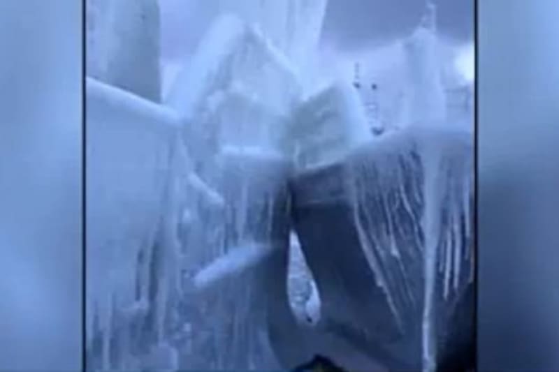 Ante una fuerte tormenta de hielo, los barcos se congelaron sin poder navegar ya que se encuentran amarrados en los puertos.