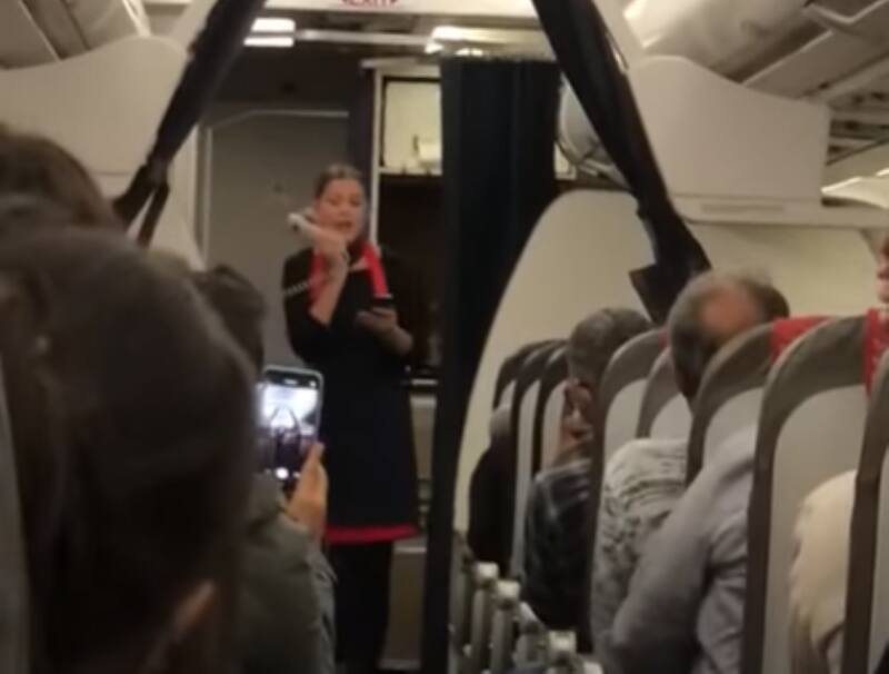 En las imágenes se puede ver a la azafata -de nombre Andrea- tomando el micrófono y sorprendiendo incluso a sus propios compañeros de tripulación, quienes al final le terminaron aplaudiendo.