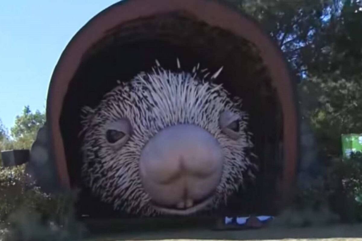 Percy, un títere de puercoespín de enormes proporciones, emergió de su guarida gigante este martes ante un público escolar y medios de comunicación en el Parque Griffithe de Los Ángeles.