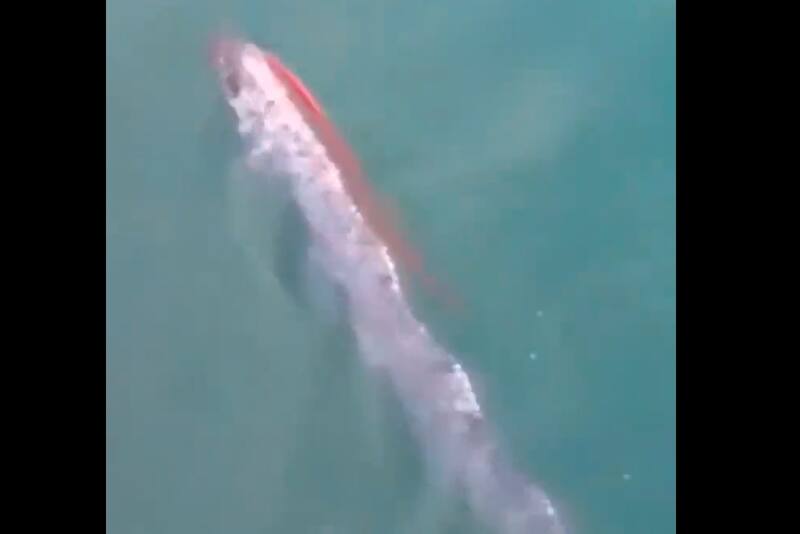 Según se escucha en el registro, es el primer ejemplar de este pez que se deja ver en el puerto de Manta del país sudamericano, y mediría unos tres metros de longitud.
