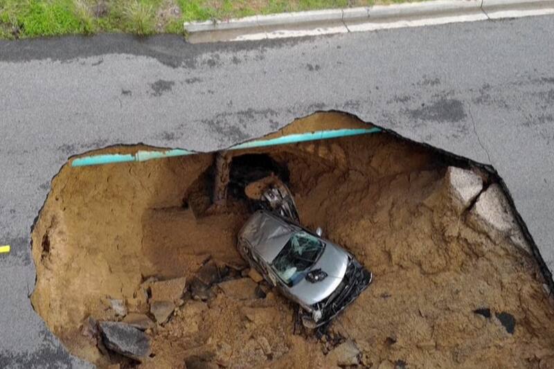 El socavón se abrió en Iverson Road al sur de Zaltana Street, justo debajo de la autopista 118, alrededor de las 7:20 p.m.