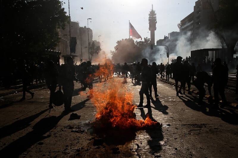 Diversos incidentes, intentos de saqueos al comercio del centro de la capital y varios enfrentamientos con Carabineros fue el saldo que dejó una nueva jornada de manifestaciones contra el Gobierno de Sebastián Piñera en lugares como Plaza Baquedano y las inmediaciones de la estación de metro Universidad de Chile.