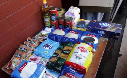 Las Cajas con mercadería que entrega el Gobierno contienen 33 alimentos, además de jabón y detergente, los cuales vienen separados para evitar contaminaciones. Entre los elementos contenidos están: