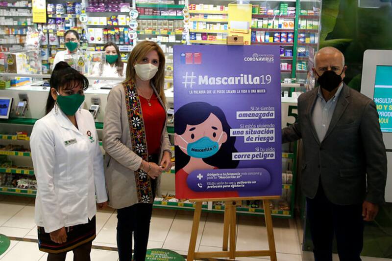 La ministra de la Mujer y la Equidad de Genero, Macarena Santelices, aseguró que 30 mujeres han recibido ayuda a través de la campaña "Mascarilla 19". La iniciativa permite que la mujer afectada por violencia de género pueda acudir a una farmacia y decir al personal la palabra clave 'Mascarilla 19'. El encargado del recinto farmacéutico, contactará al número de orientación: 1455, o al 149 de carabineros para casos mas graves.