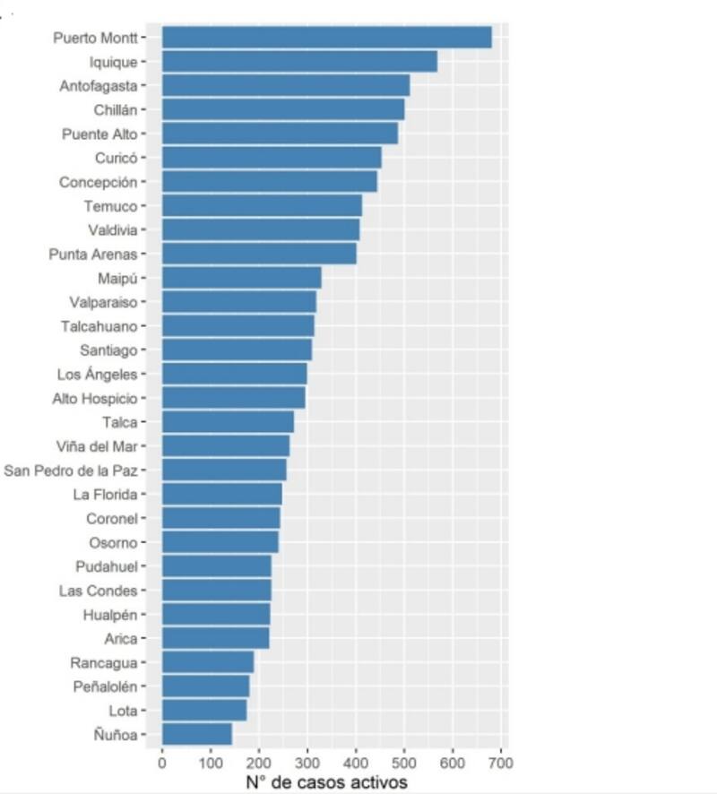La situación comunal con respecto a los casos activos de Covid-19 tiene como protagonistas a zonas de regiones del norte y sur de nuestro país. De las 10 primeras en el listado, sólo una corresponde a la Región Metropolitana.