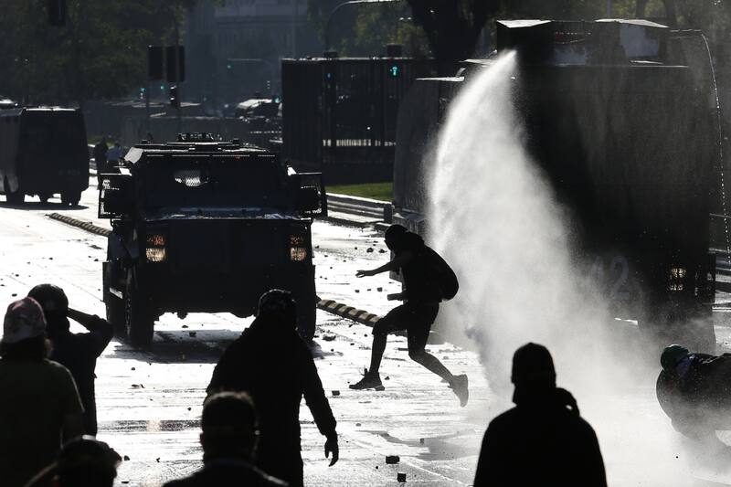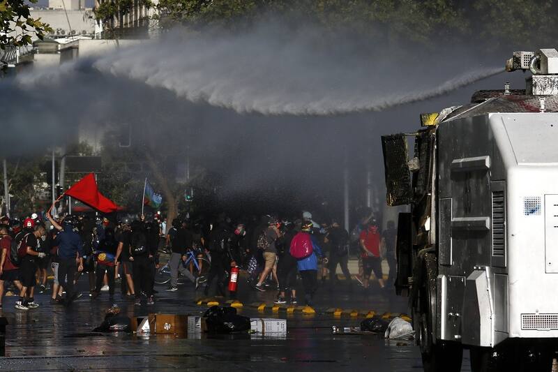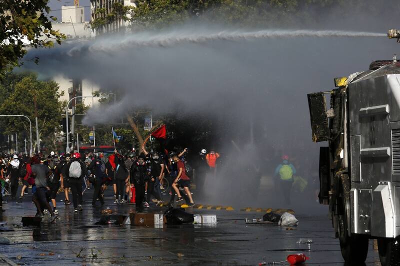 Los incidentes en la importante arteria de la capital obligaron a la acción de personal de Control del Orden Público de Carabineros, quienes utilizando el carro lanza aguas buscó dispersar a los participantes de la protesta. No obstante ello, los manifestantes habrían llegado hasta el centro de la Plaza, a la estatua del General Baquedano.