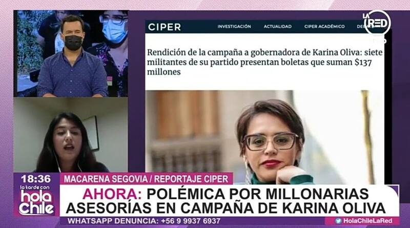 Hace pocos minutos, el programa de La Red, "Hola, Chile", mostró en vivo la llegada del personal de Fiscalía y carabineros hasta el hogar de la excandidata a gobernadora, hoy aspirante a senadora, Karina Oliva.